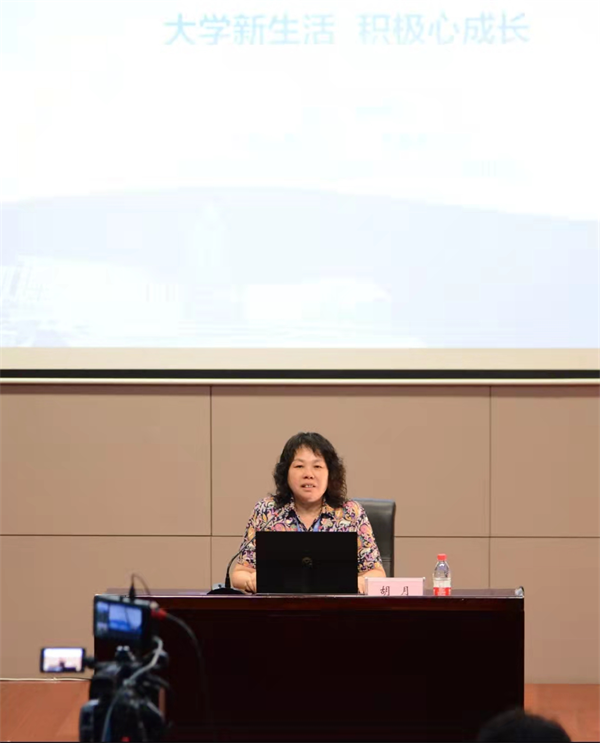 2021年9月11日下午,我校心理健康教育与咨询中心主任胡月教授,在主楼一阶报告厅为我校两区三地全体2021级本科新生讲述了入学教育心理健康第一课《大学新生活 积极新成长》,引导同学们正确面临生活学习中带来的新挑战,学会心理调节,与快乐同行,用爱和智慧成就自己,强大国家,勇于承担责任和创新,努力奉献青春力量。